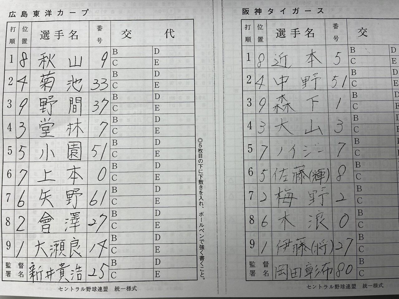 【広島対阪神5回戦】7(捕) 梅野 隆太郎 8(遊) 木浪 聖也