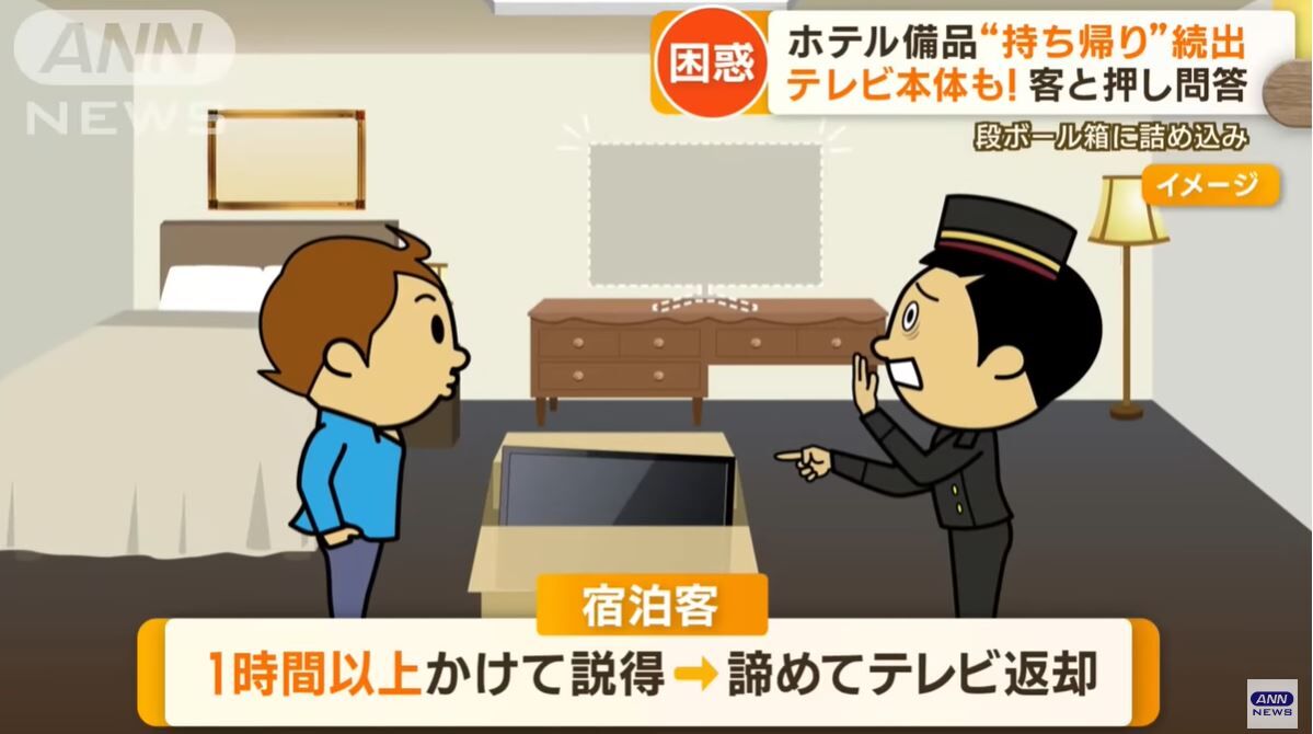各地の宿泊施設で、備品の持ち帰り被害が問題となっています。