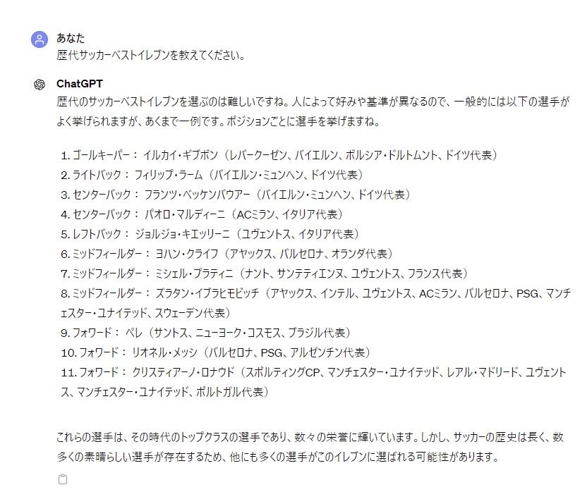 【朗報】チャットGPTが選ぶサッカー歴代ベストイレブン、決まるwwwwwww