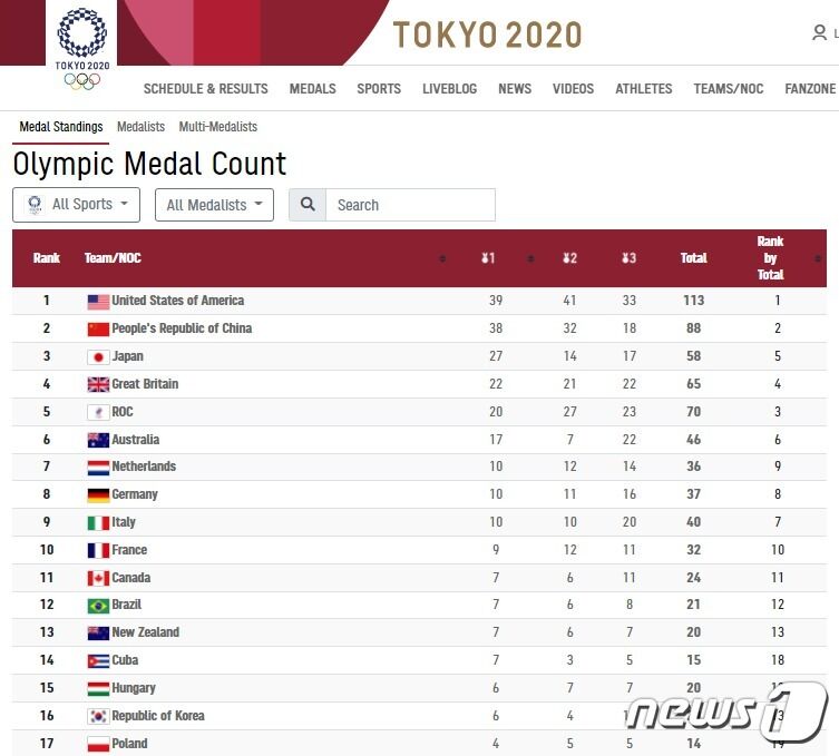(ソウル=ニュース1)イ・サンチョル記者=大韓民国選手団は、2020東京オリンピックを総合順位16位で終えた。