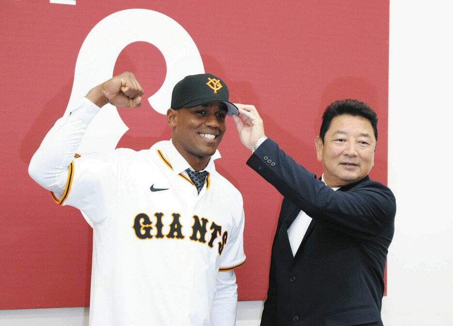 会見に同席した吉村禎章編成本部長は「一番に注目しているのは広角に打てること。日本のピッチャーもレベルが上がっているが、変化球の見極めができて、日本の野球に合うと判断した」と獲得の決め手を説明。「チーム構成上、左打者が多いので、コンディションを整えて一日も早く1軍の戦力になってほしい」と期待した。