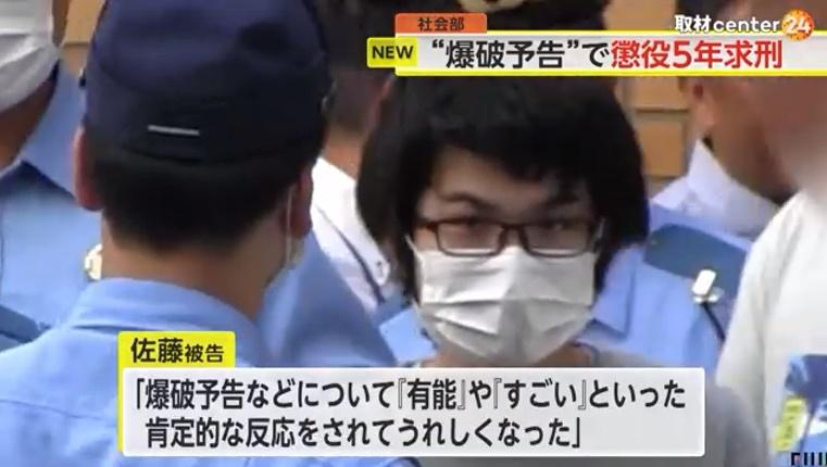 佐藤被告は被告人質問で、特定の弁護士を中傷する架空の団体「恒心教(こうしんきょう)」のメンバーから、「爆破予告などについて『有能』や『すごい』といった肯定的な反応をされてうれしくなった」と述べた。