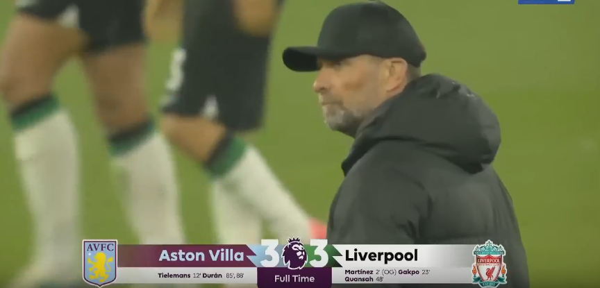 遠藤航が交代後に2失点…リバプールは2点差を守り切れず、アストン・ビラと3-3のドロー