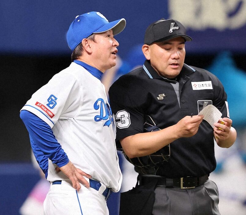 立浪監督は快投の小笠原を0―0の9回先頭の中野に右翼線二塁打を打たれたところでマルティネスにスイッチ。