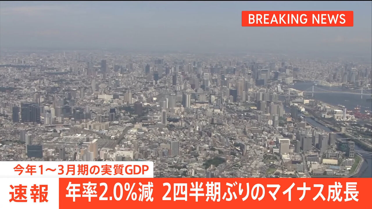 GDP年率2.0%減 1~3月、2四半期ぶりマイナス成長
