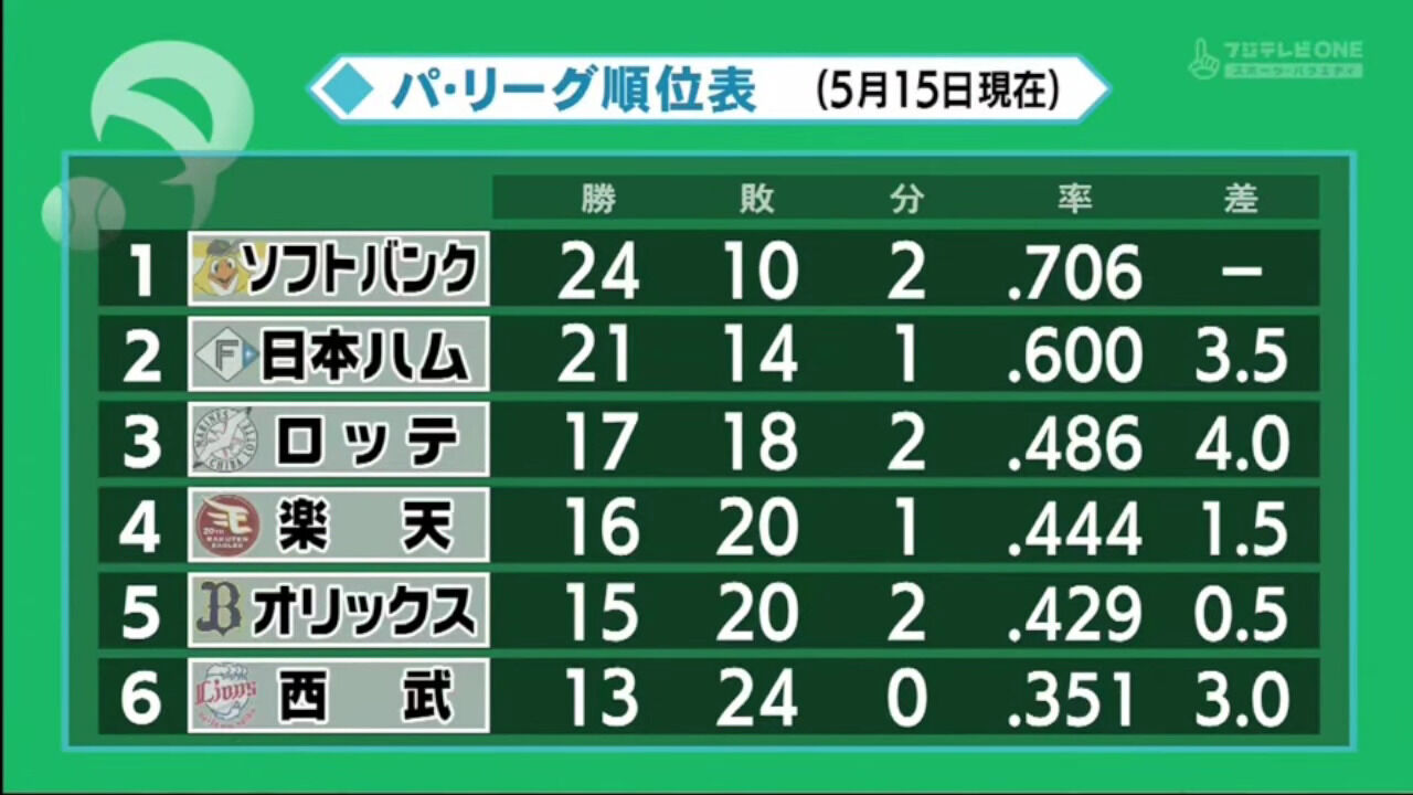 【悲報】オリ、SBと9.5ゲーム差