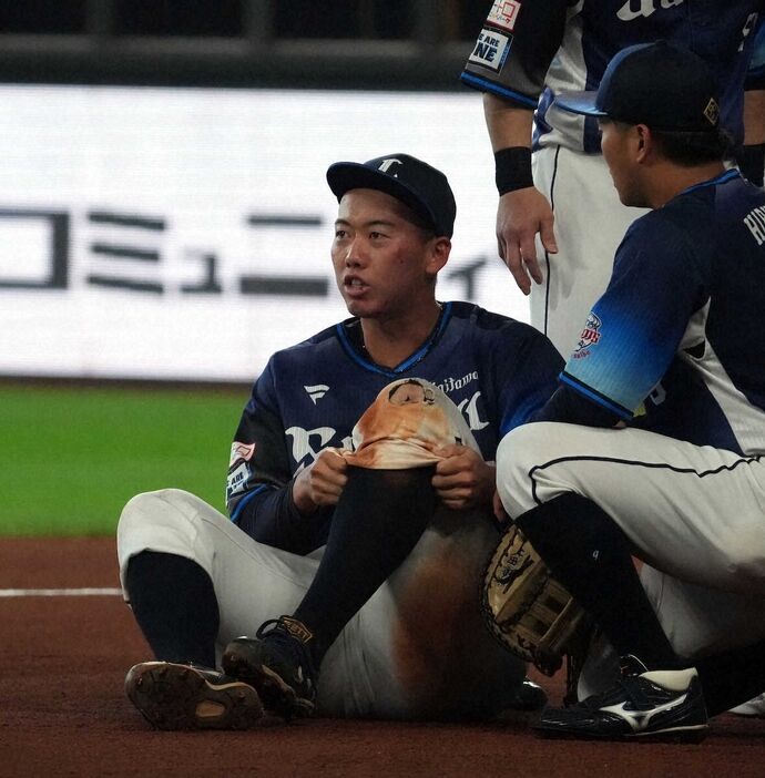 15日日本ハム戦(エスコンフィールド)の7回の守備で一邪飛を追いかけ、一塁側ファウルゾーンのネットに激突。左膝と顔面を強打して途中交代していた。