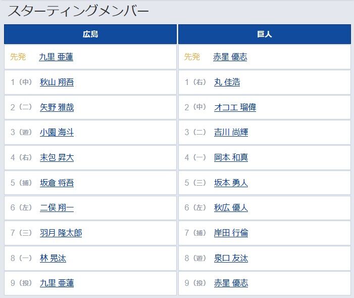 【広島対巨人8回戦】6(左) 秋広 優人 8(遊) 泉口 友汰