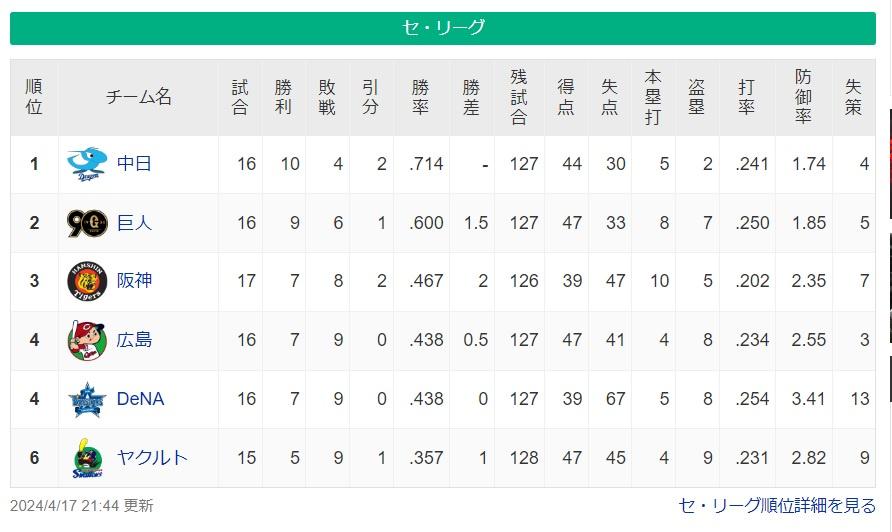 4月の名古屋テレビ局「ドラゴンズ首位!今のうちに順位表写真撮って!」
