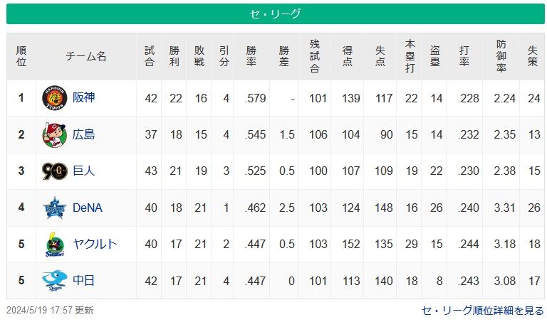 【セ順位】虎=-鯉-兎==-星-燕竜【5/19】