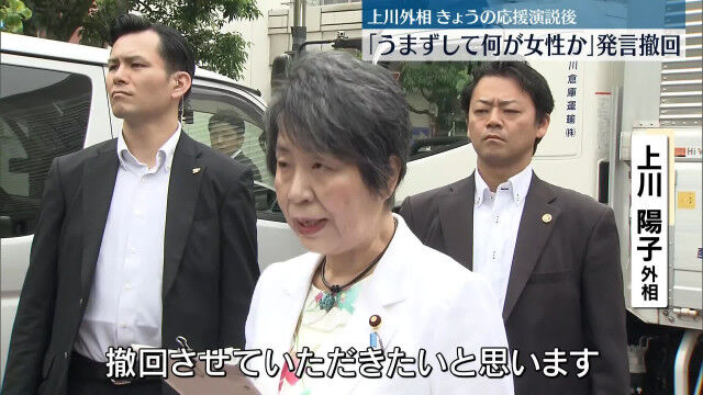 上川外相、発言撤回 「うまずして何が女性か」