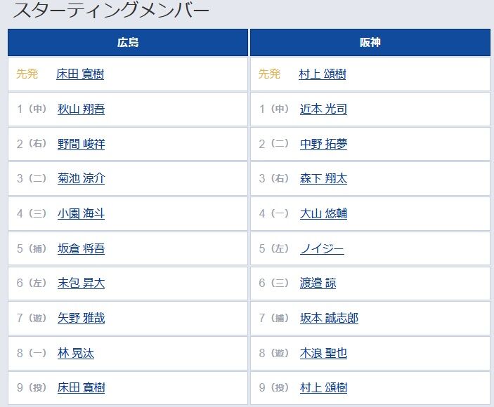 【広島対阪神8回戦】5(左) ノイジー 6(三) 渡邉 諒