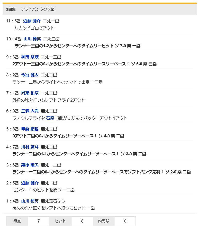【ソフトバンク対楽天8回戦】ソフトバンク、2回に打者一巡の猛攻で一挙7点先制!!!!!!!
