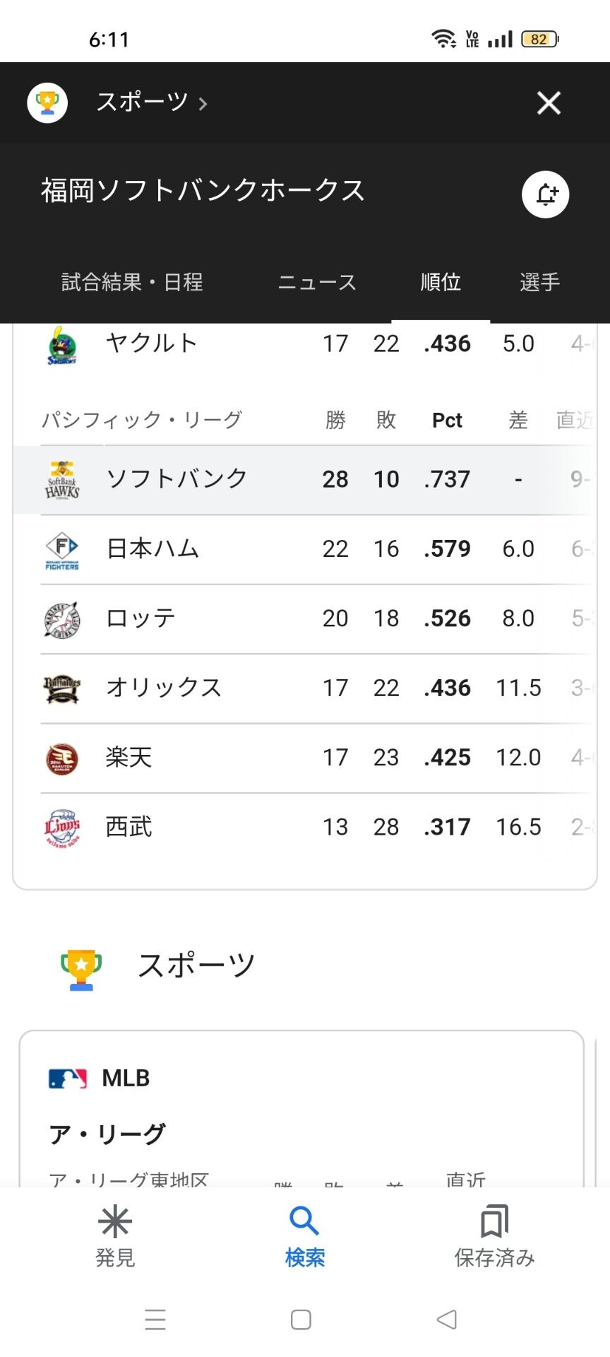 福岡ソフトバンクホークスさん、貯金18で勝率.737w w w w w w w w w w w w w w w w w w