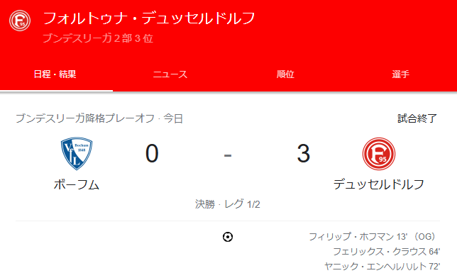 田中碧が奮闘のデュッセルドルフ、浅野先発ボーフムに敵地で3発先勝し昇格へ大きく前進【ブンデスリーガ昇格・降格プレーオフ】https://news.yahoo.co.jp/articles/7ad4cb8f90b400578cbcd8887fbd1bd54db45508
