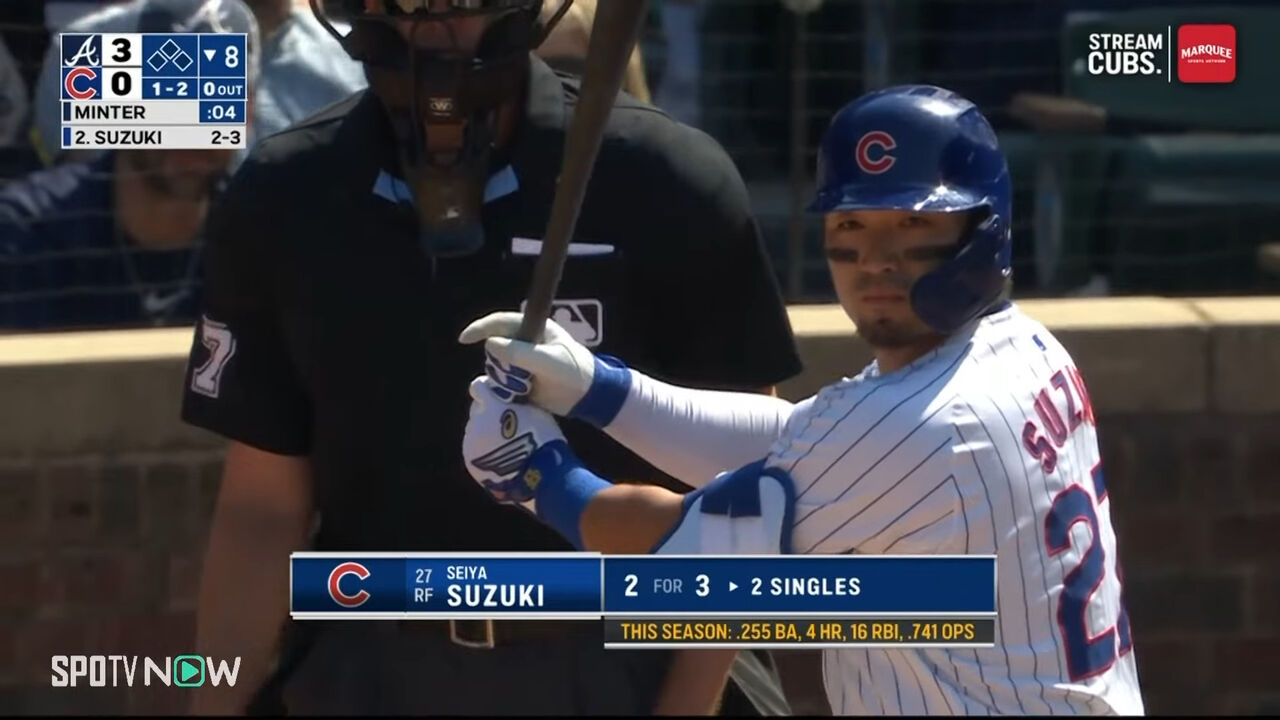 鈴木誠也 4打数2安打 .252 4本 16打点 1盗塁