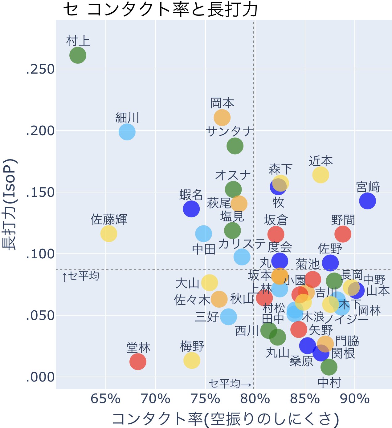 【セ・リーグ】コンタクト率と長打力 森下≒牧だとはっきりわかる