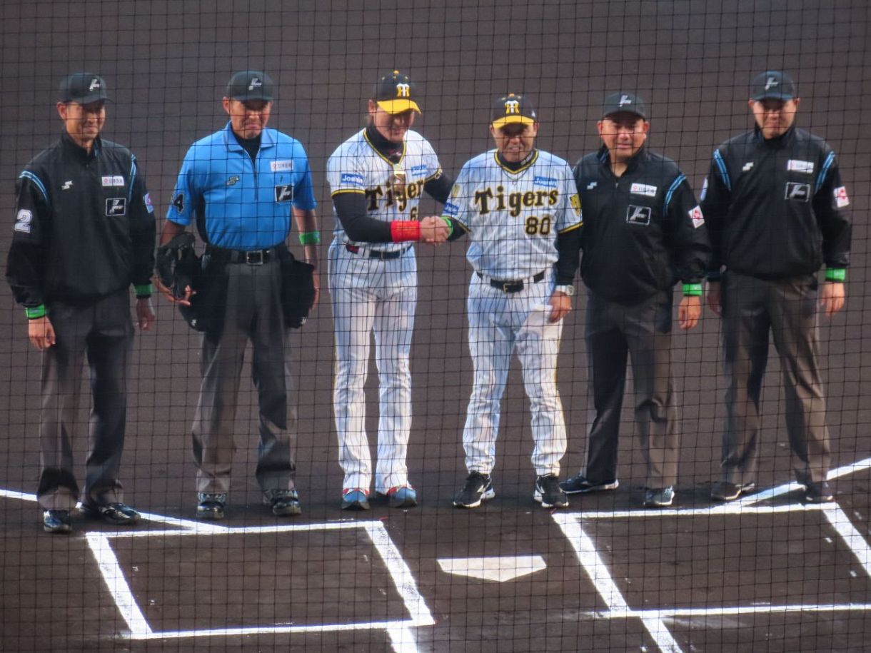 @Saba_Tigers【速報】日本ハム 対 阪神のメンバー表交換にて、新庄監督が阪神タイガースのユニフォームで登場するサプライズwwwww pic.twitter.com/SQyypoObYB