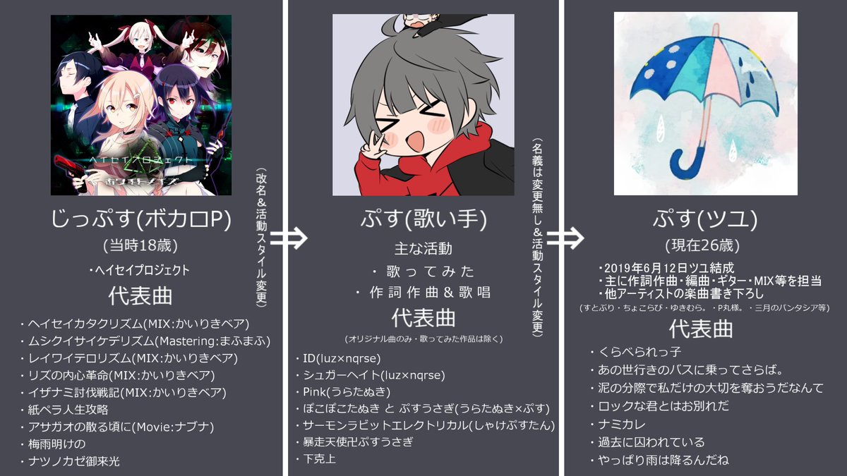最近驚かれる事が増えたんですが、ボカロPの『じっぷす』とツユの『ぷす』は同一人物で間違いないです・・・