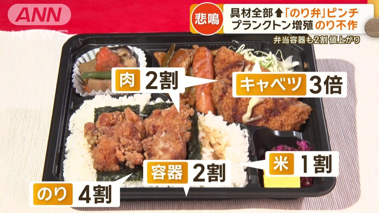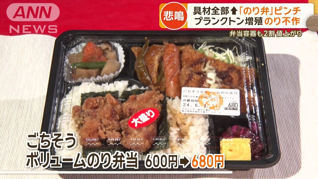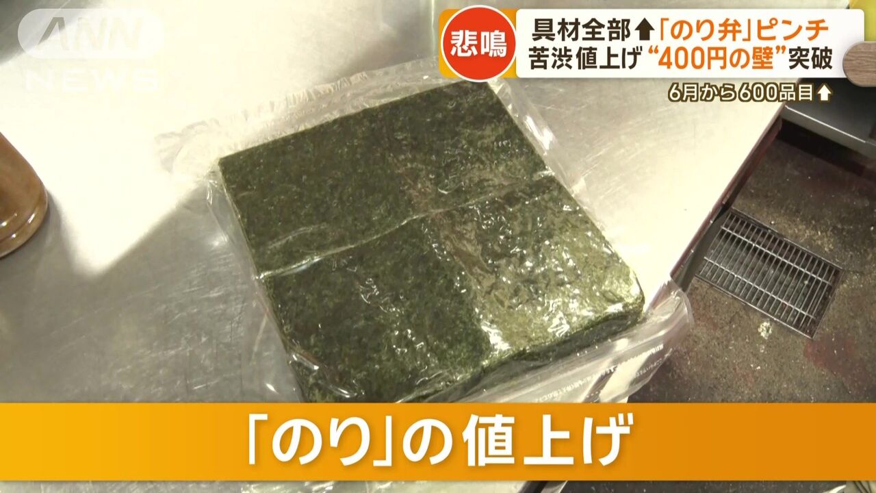 町のお弁当屋さんが具材の値上げでピンチです。「のり弁」になくてはならない「のり」も4割値上がりし、400円の壁を超える苦渋の決断を迫られています。