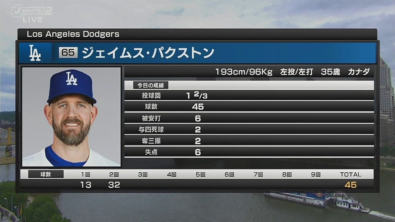 ドジャース先発パクストン、2回途中7失点の大炎上…