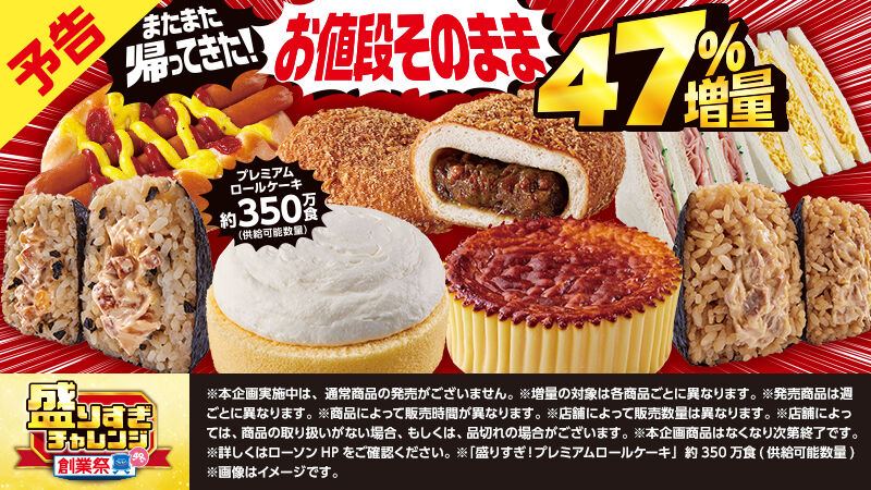 6月はローソン創業祭。ローソンは2024年6月で、49周年を迎えます。創業を記念して、あの伝説の「盛りすぎチャレンジ」がまたまた帰ってきました。