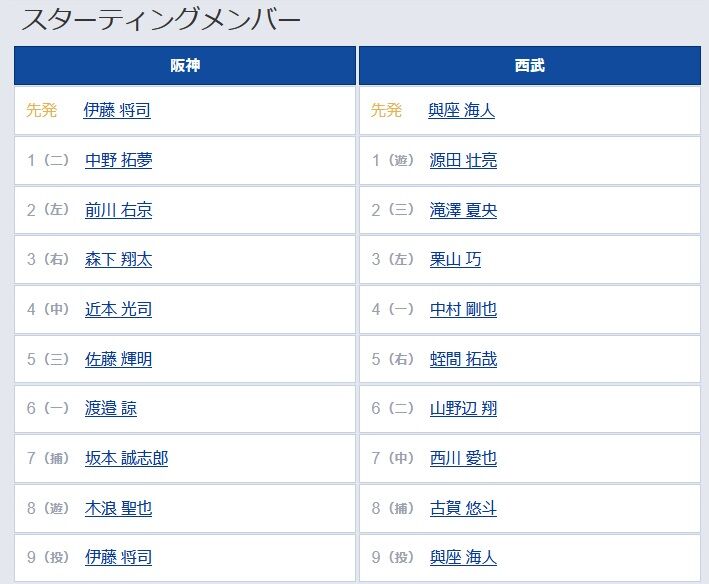 【阪神スタメン】