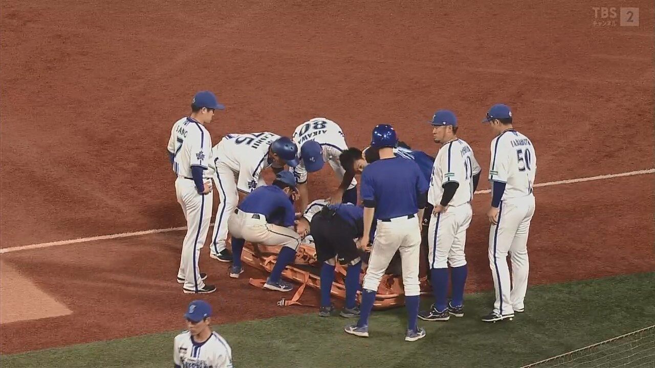 【DeNA対ソフトバンク1回戦】DeNA上茶谷が一塁への走塁で負傷 立ち上がれず担架…ブルーシートで隠され退場