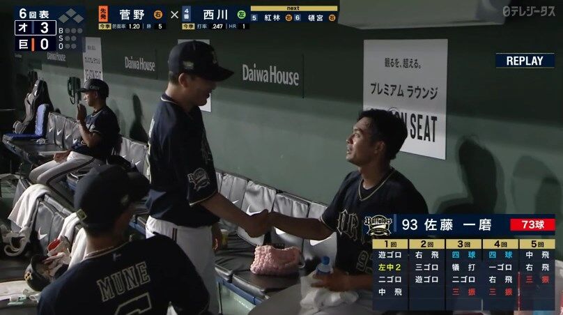 【巨人対オリックス3回戦】オリックス、プロ初登板初先発の佐藤一磨、5回まで無失点で勝ち投手の権利!!!!!