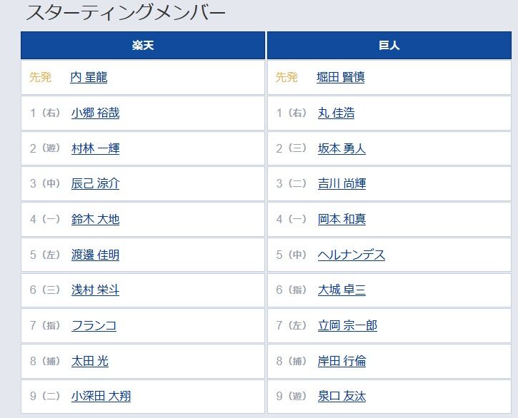 【楽天対巨人2回戦】2(三) 坂本 勇人 5(中) ヘルナンデス
