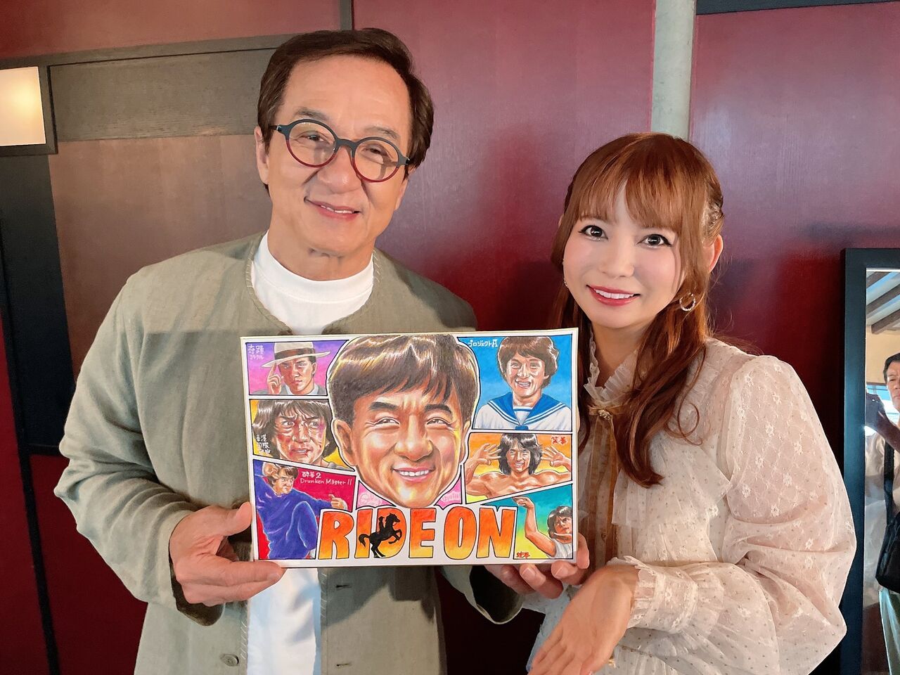 ライドオンの、イラストをプレゼントしました!ジャッキー、舞台挨拶でも大サービスでたくさん歌ってくれて!