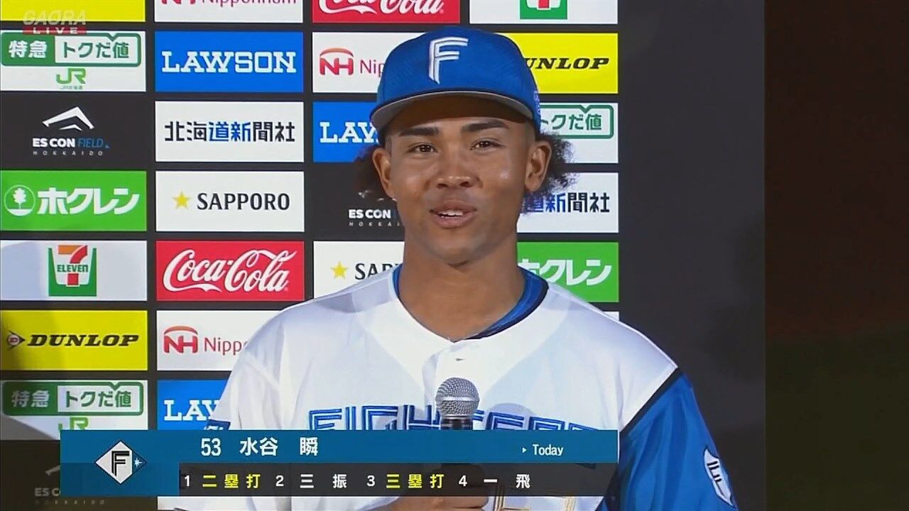 日ハム 水谷 .407 2本 15打点 OPS1.010