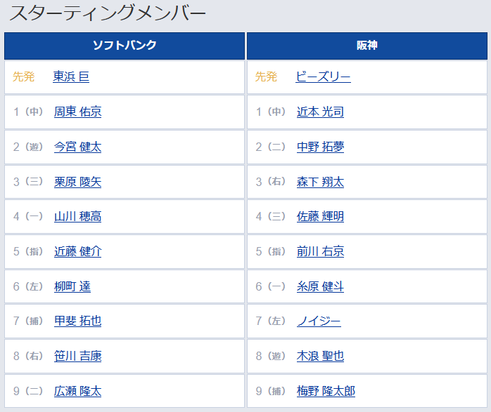 【ソフトバンク対阪神2回戦】1(中) 近本 光司 4(三) 佐藤 輝明