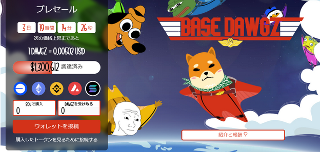 【おすすめ】マルチチェーン機能を備えたBase Dawgz、早くもプレセールは100万ドルを突破!