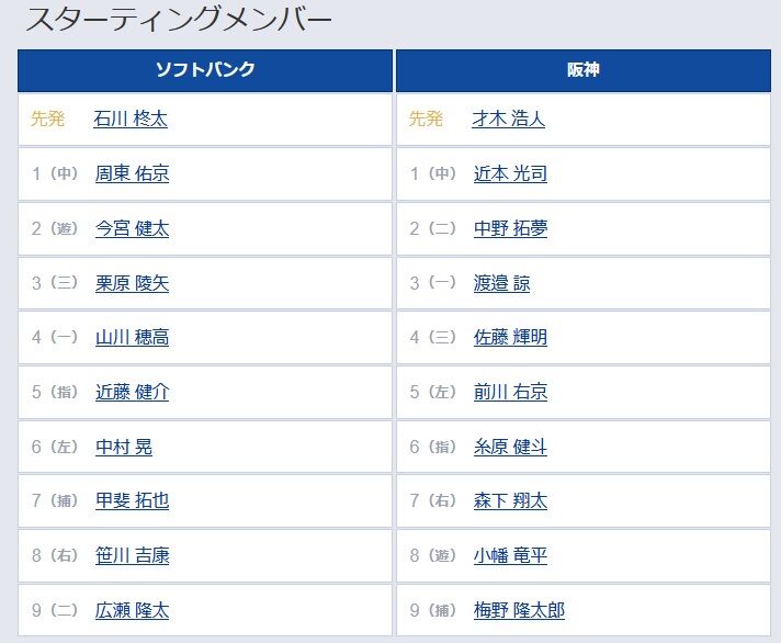 【ソフトバンク対阪神3回戦】6(指) 糸原 健斗 8(遊) 小幡 竜平