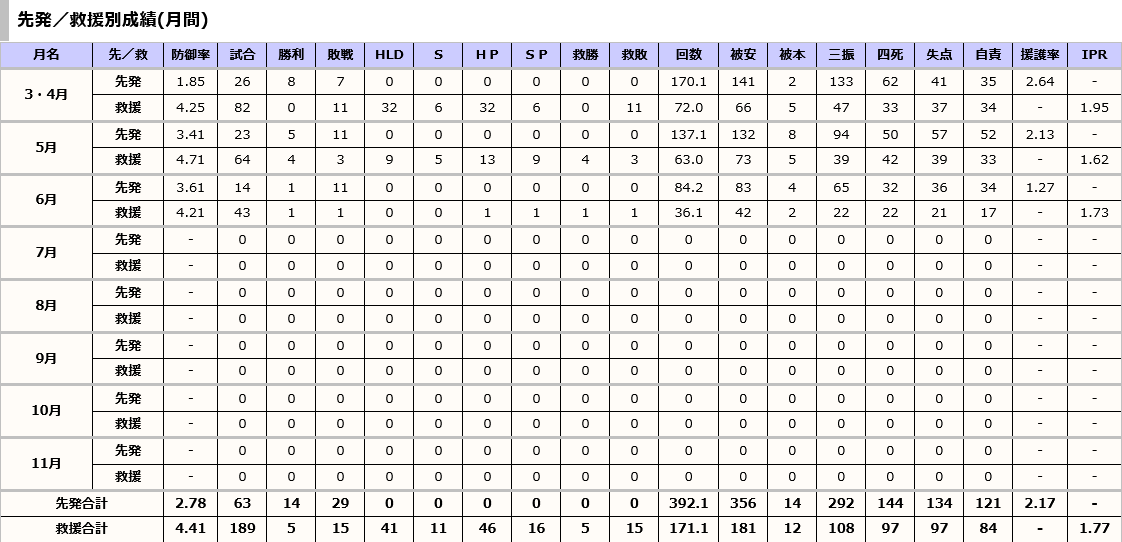 【悲報】西武の先発さん、6月援護率1.27
