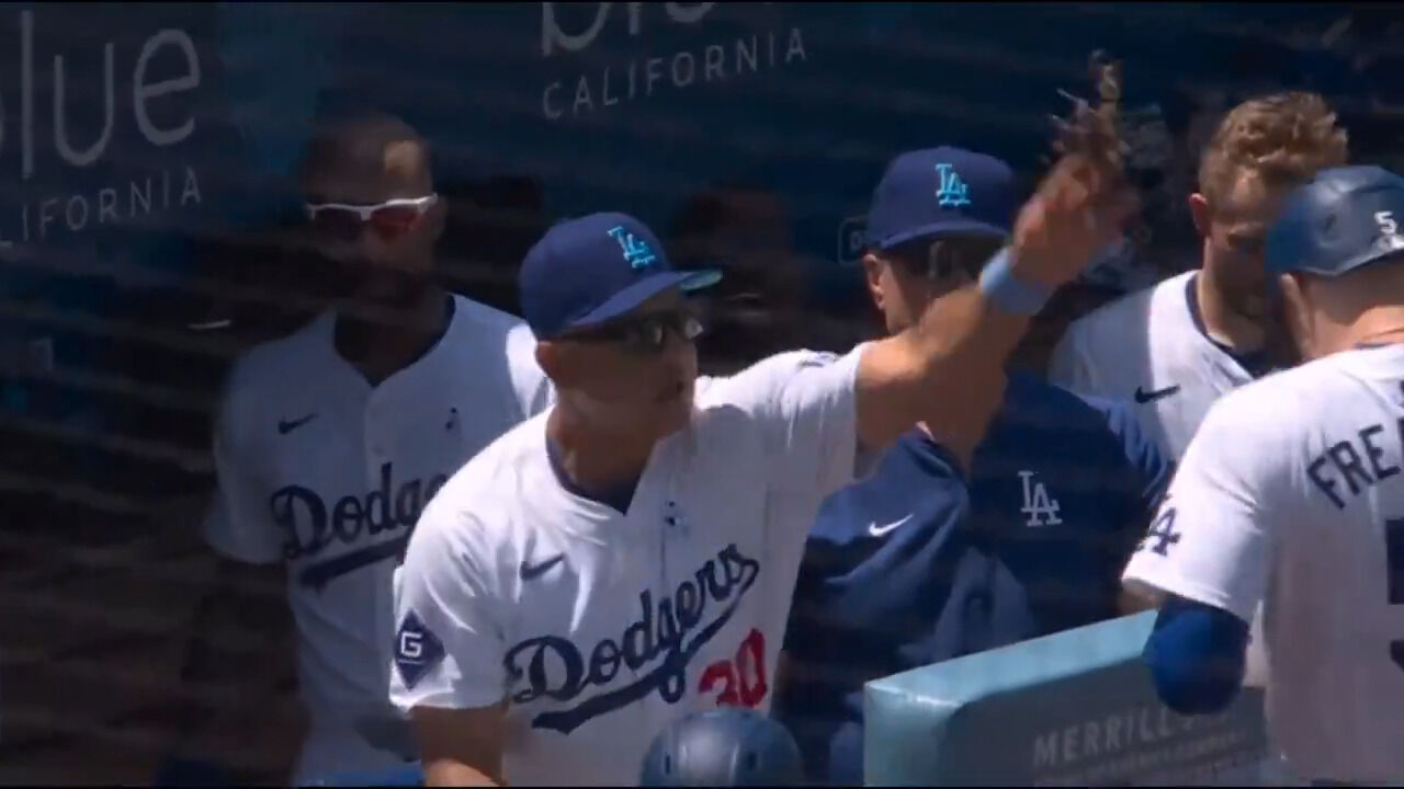 大谷はこの日、本拠地で行われたロイヤルズ戦に2番・DHで先発出場し、3回に左中間スタンドへ豪快な一発を放った。続く6回にはライトスタンドにボールを軽々と運び、3番のフレディ・フリーマンも続けてホームランを放った。ホームランを打った選手にはヒマワリの種を浴びせるセレブレーションがチーム内で行われているが、今回は監督がその役を買ったようで、笑顔でベンチに戻ってきたフリーマンに至近距離でヒマワリの種を投げつけた。