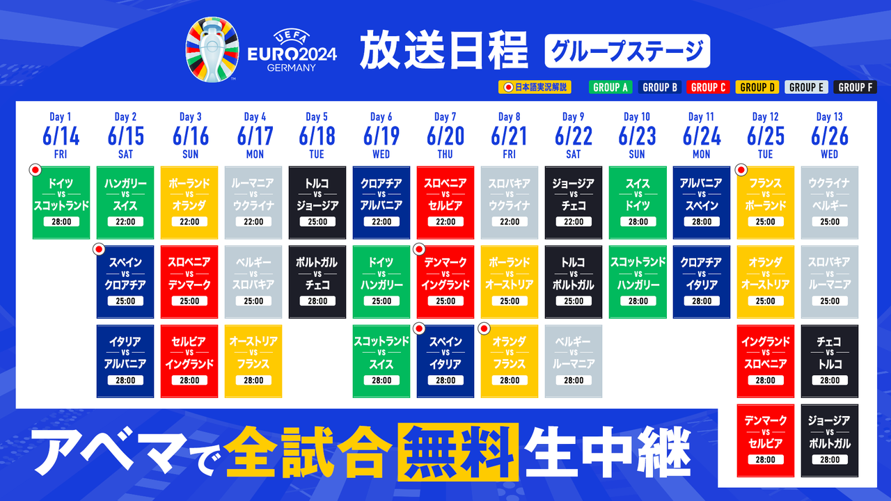 『ABEMA(アベマ)』は25日、無料生中継するEURO2024の開幕1週間の累計視聴者数が700万を突破したことを発表した。