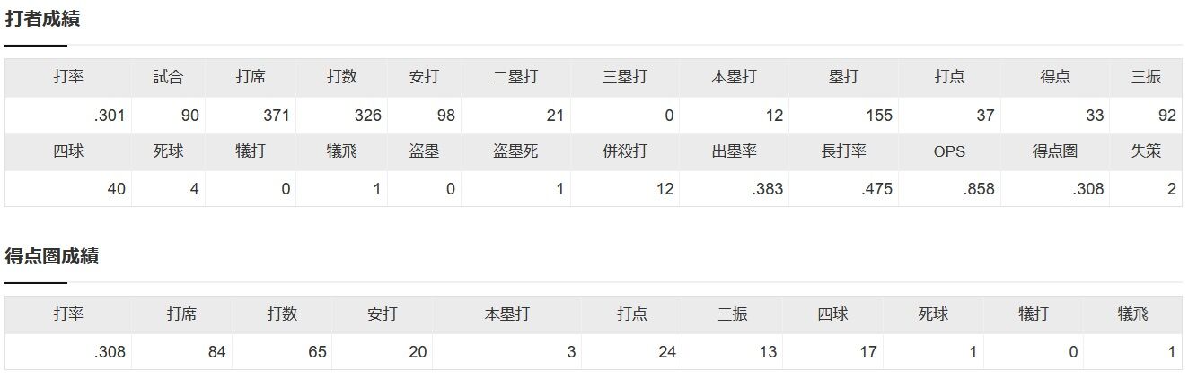 前半戦 細川成也(25)打率 .301(326-98) 本塁打 12 打点 37 OPS .858得点圏 .308 ←こいつ
