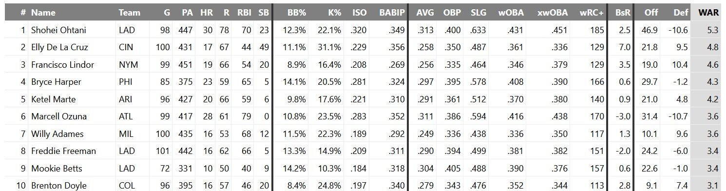 【悲報】大谷翔平さん、ナリーグWAR1位から抜かれそう