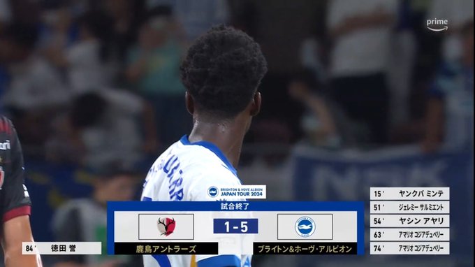 FW三笘薫が5か月ぶり復帰、国立のピッチで存在感 ブライトンは鹿島に5発大勝