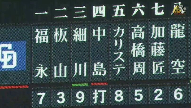 【阪神対中日17回戦】中日、8回2アウト一三塁で代打・中島