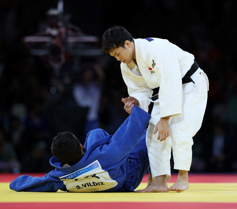 準々決勝で敗れた永山竜樹(28)=SBC湘南美容クリニック=は、3位決定戦でイルディス(トルコ)に合わせ技一本勝ちで銅メダルを獲得した。開始45秒で大腰で技ありを奪うと、残り52秒で横車で再び技ありを奪い、メダルをもぎとった。同階級では日本勢4大会連続メダルとした。