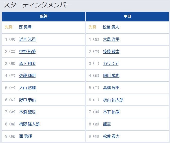 【阪神対中日18回戦】6(左) 野口 恭佑 3(一) カリステ