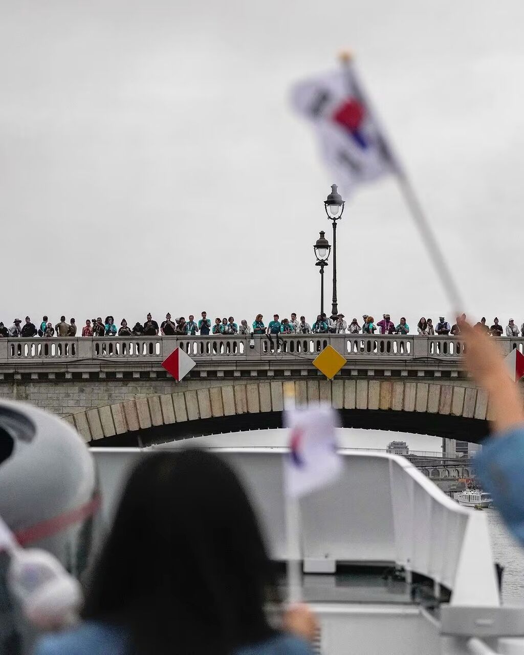しかも太極旗もぼやけて撮影された。焦点は韓国の選手ではなく、セーヌ川の上の橋に集まった観光客に合わせられていた。