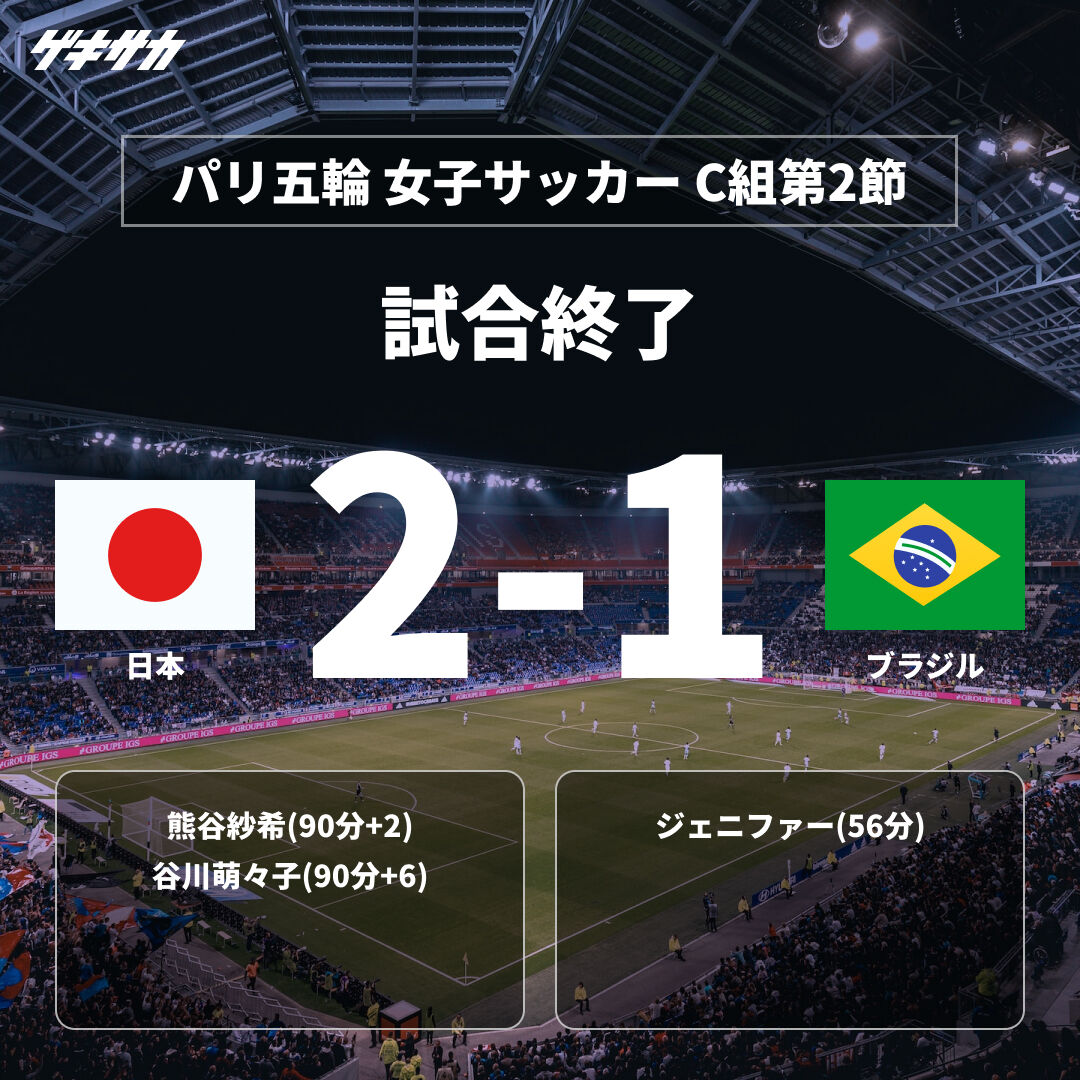 サッカー女子日本2-1ブラジル