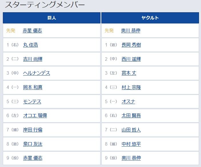 【巨人対ヤクルト15回戦】5(三) モンテス 6(左) オコエ 瑠偉