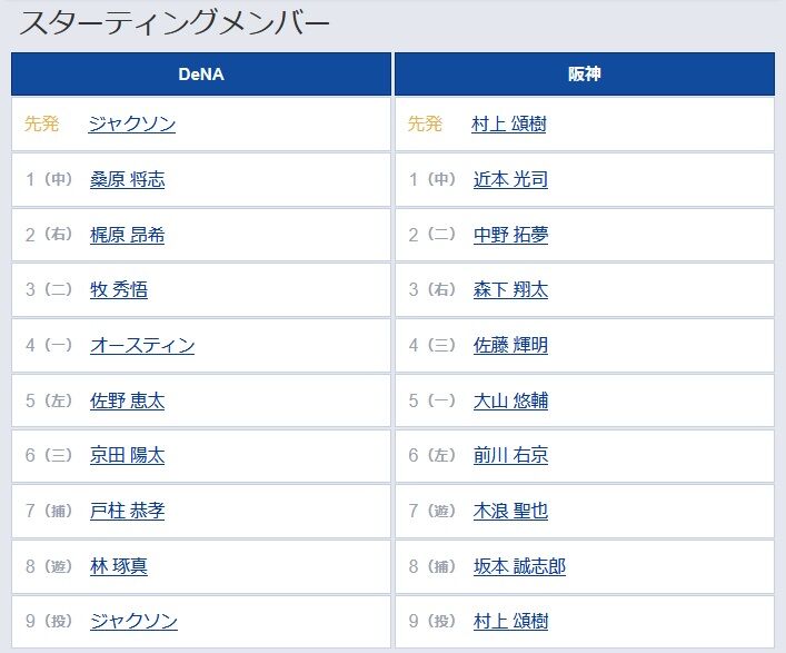 【DeNA対阪神14回戦】4(一) オースティン 4(三) 佐藤 輝明