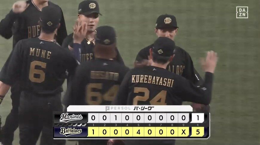 【オリックス対ロッテ15回戦】オリックス、連敗は10でストップ!来田が勝ち越し2点打&田嶋が5勝目!ロッテは連勝4でストップ