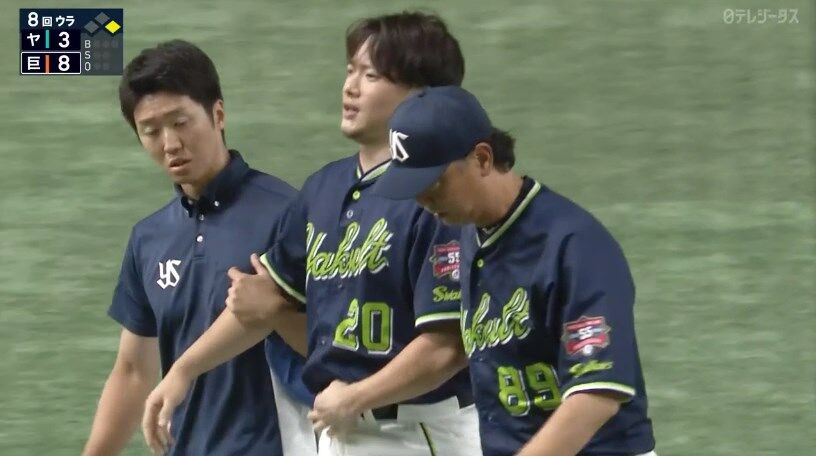 【巨人対ヤクルト16回戦】ヤクルト・木澤にアクシデント ライナーが胸に直撃して負傷交代…